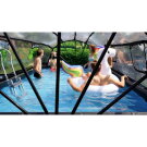 Dzięki kopule do basenu EXIT nie musisz martwić się o pogodę. Kopuła gwarantuje, że do wody nie dostanie się żaden brud i stanowi ekologiczne rozwiązanie do podgrzewania wody, ponieważ ciepło słoneczne jest zatrzymywane pod nią. Kopuła jest przezroczysta i bardzo łatwa do otwarcia dzięki zintegrowanym sprężynom. Kopuła posiada także trzy składane okna i drzwi. Krótko mówiąc: korzystaj ze swojego basenu bez względu na pogodę.