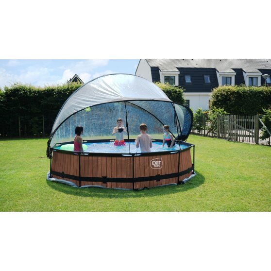 Basen Wood EXIT ø360x76cm z pompą filtrującą i kopułą- brązowy