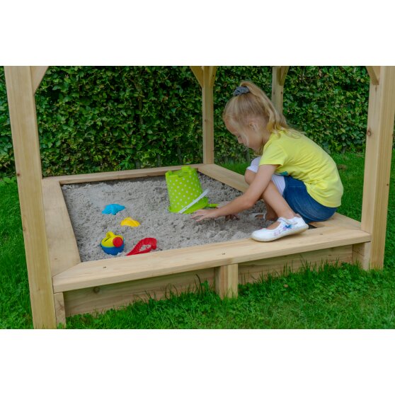 Podobnie jak w przypadku wszystkich domków do zabawy, do drewnianego domku do zabawy Loft 550 EXIT dostępne są różne akcesoria, takie jak ładny zestaw piknikowy ze stołkami lub uroczy zestaw dekoracyjny do wykonywania rysunków. Zaprojektuj swój kącik zabaw według własnego uznania i przeżyj wspaniałe przygody na świeżym powietrzu!